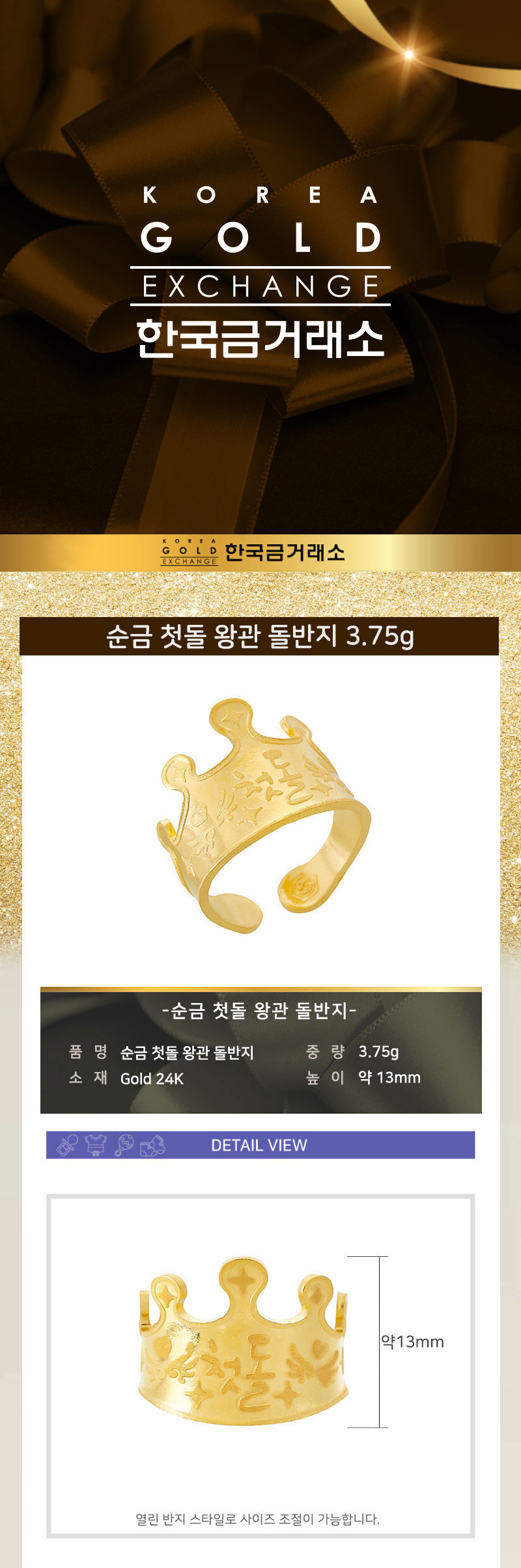 • 순금 첫돌 왕관 돌반지 3.75g
